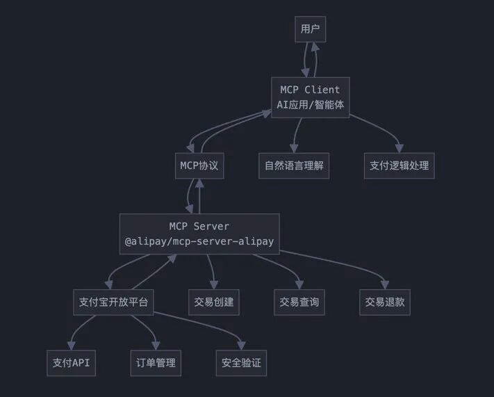 MCP Server:@alipay/mcp-server-alipay 是支付宝开放平台提供的 MCP Server,让你可以轻松将支付宝开放平台提供的交易创建、查询、退款等能力集成到 LLM 应用中,并进一步创建具备支付能力的智能工具。