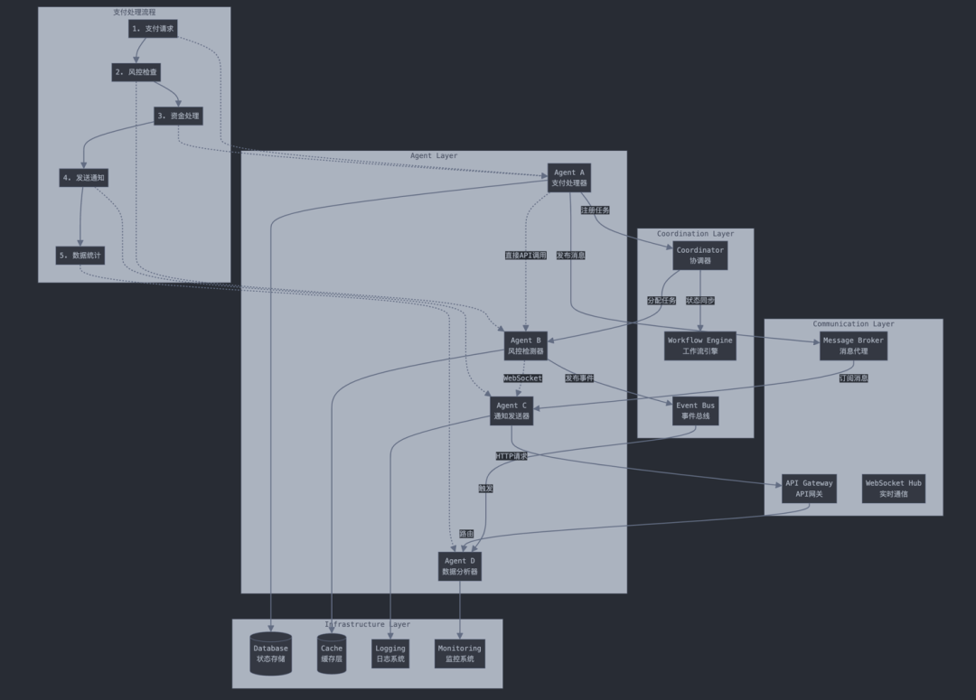 - A2A模式: 智能体A ↔ 智能体B ↔ 智能体C