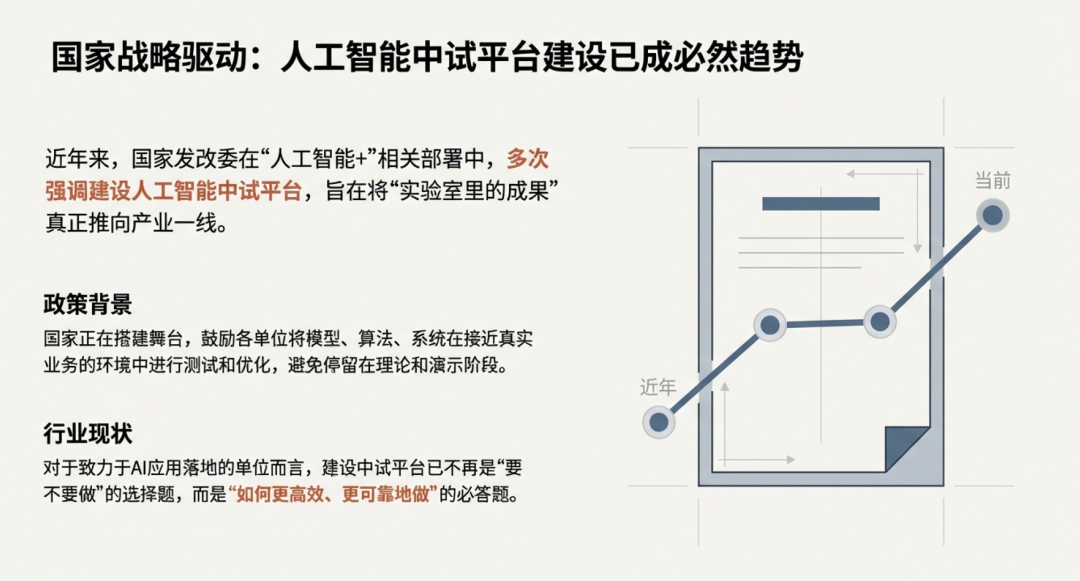 换句话说,人工智能中试平台就是一个让AI从“能跑Demo”到“敢上生产”的中间试验场。对希望做AI应用落地的你来说,它应该是一个“随时可以拉模型进来,随时可以接业务出去”的公共试车场,而不是一个只给人看展板的形象工程。