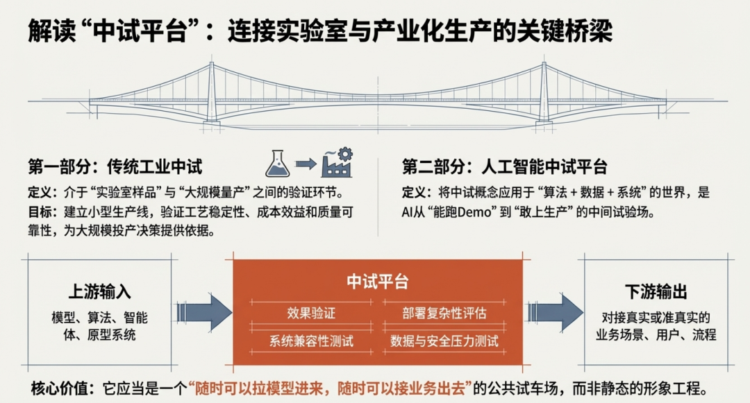 对人工智能来说,人工智能中试平台就是把这个过程搬到“算法 + 数据 + 系统”的世界: