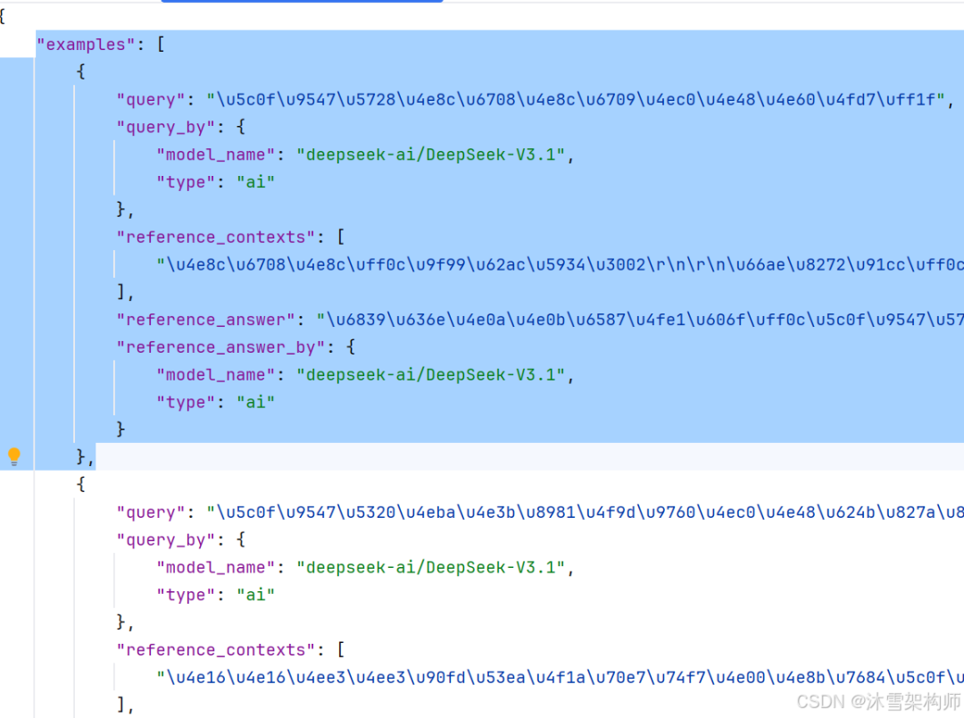 在这段代码中,手工设置了中文的 Prompt,一方面有助于了解生成原理与调试生成结果,另一方面用于生成中文问题。最后,把生成的检索评估数据集保存到本地的 JSON 文档中,以减少不必要的重复生成,后面只需要从本地文档中加载即可。