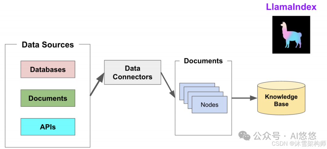 LlamaIndex 通过提供 Data connectors(数据连接器) 和 Indexes (索引) 帮助开发者构建知识库。