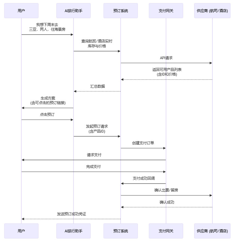 流程的复杂性:旅行预订不是一次简单的API调用,它是一个包含多次交互、状态变更的复杂流程。通用大模型很难仅通过几次Function Calling来完美管理整个预订会话。