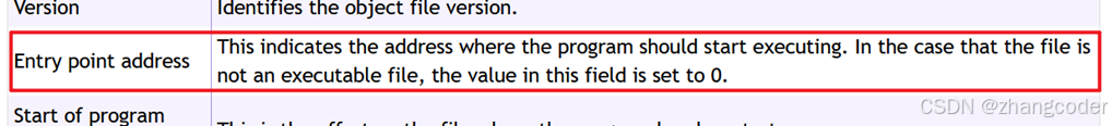 | Entry point address | This indicates the address where the program should start executing. In the case that the file is not an executable file, the value in this field is set to 0. |