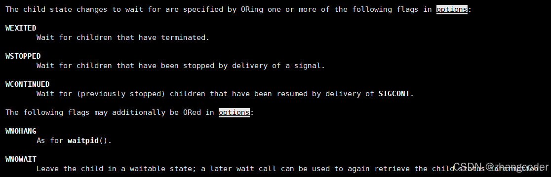 options表示等待方式,0表示阻塞等待,其他选项可以用宏来表示