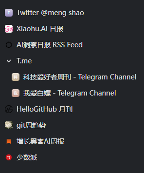 分享一下我获得新信息的渠道:使用的软件是RSS订阅器-folo,关注的博主列表如下,每天都能看到十几条最新的科技咨询,新鲜且量大,包括动态、日报、周报