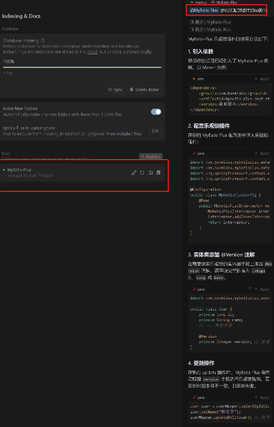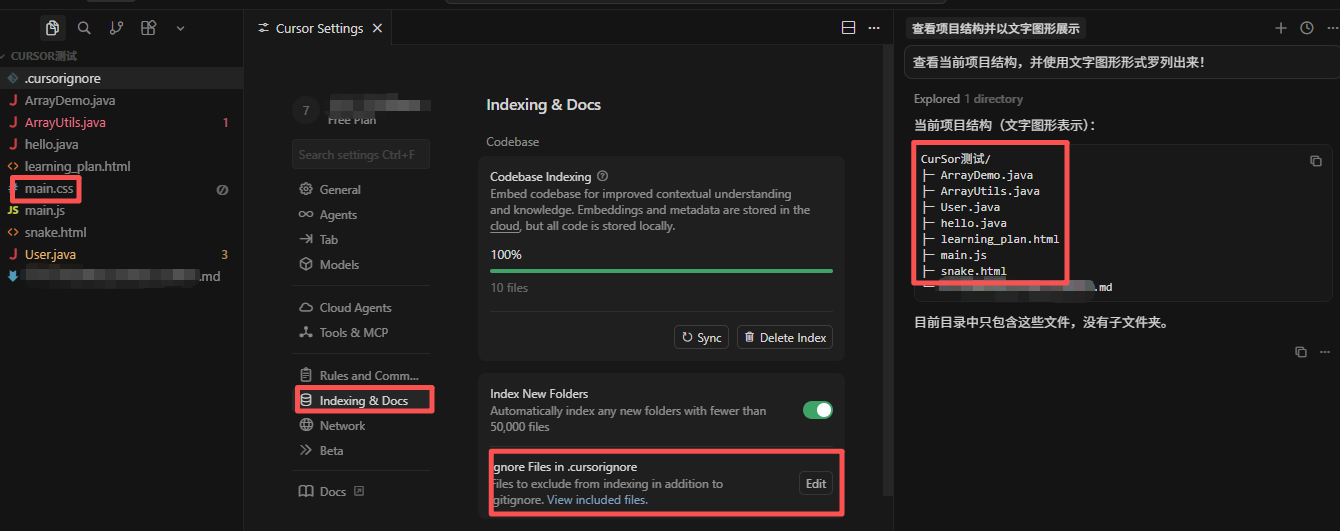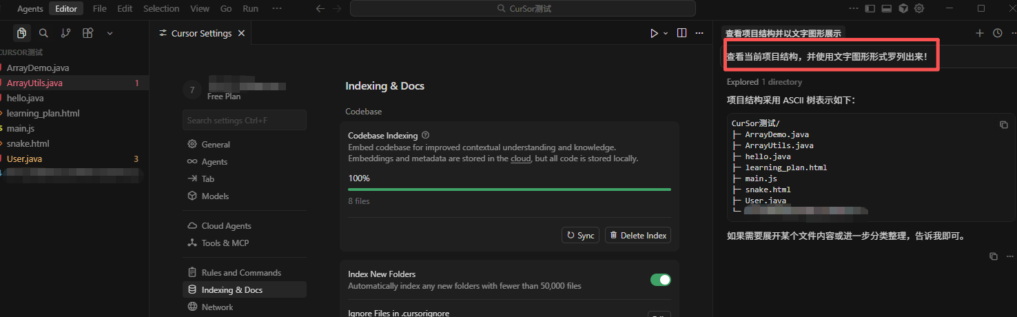Cursor 中的作用:AI 分析索引内容后,生成代码时会更贴合项目实际(如使用已有工具函数、遵循命名规范)。