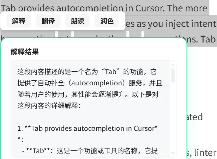 5. 翻译、解释、润色功能实用kimi的api实现即可,具体参考配置kimi api文档