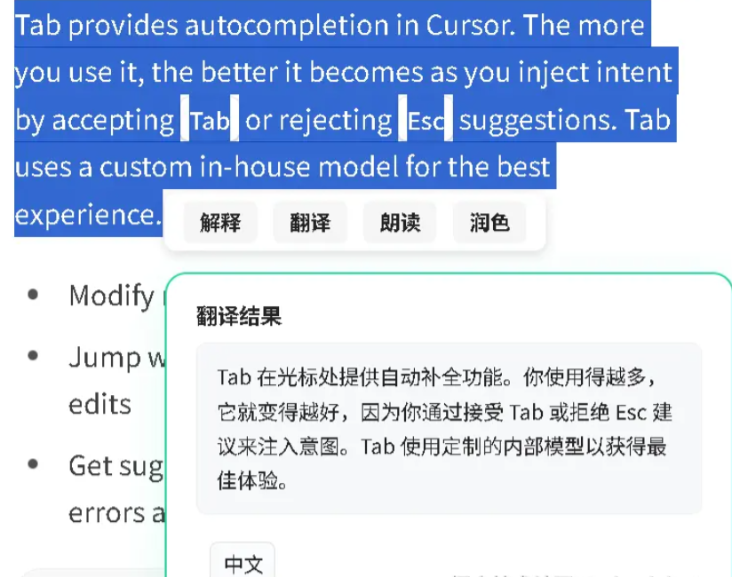 1. 选中文本后,悬浮菜单自动显示在选中文本附近