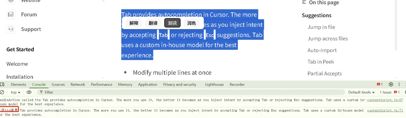 6. 朗读直接调用chrome浏览器内置插件即可(提供中文和英文朗读)