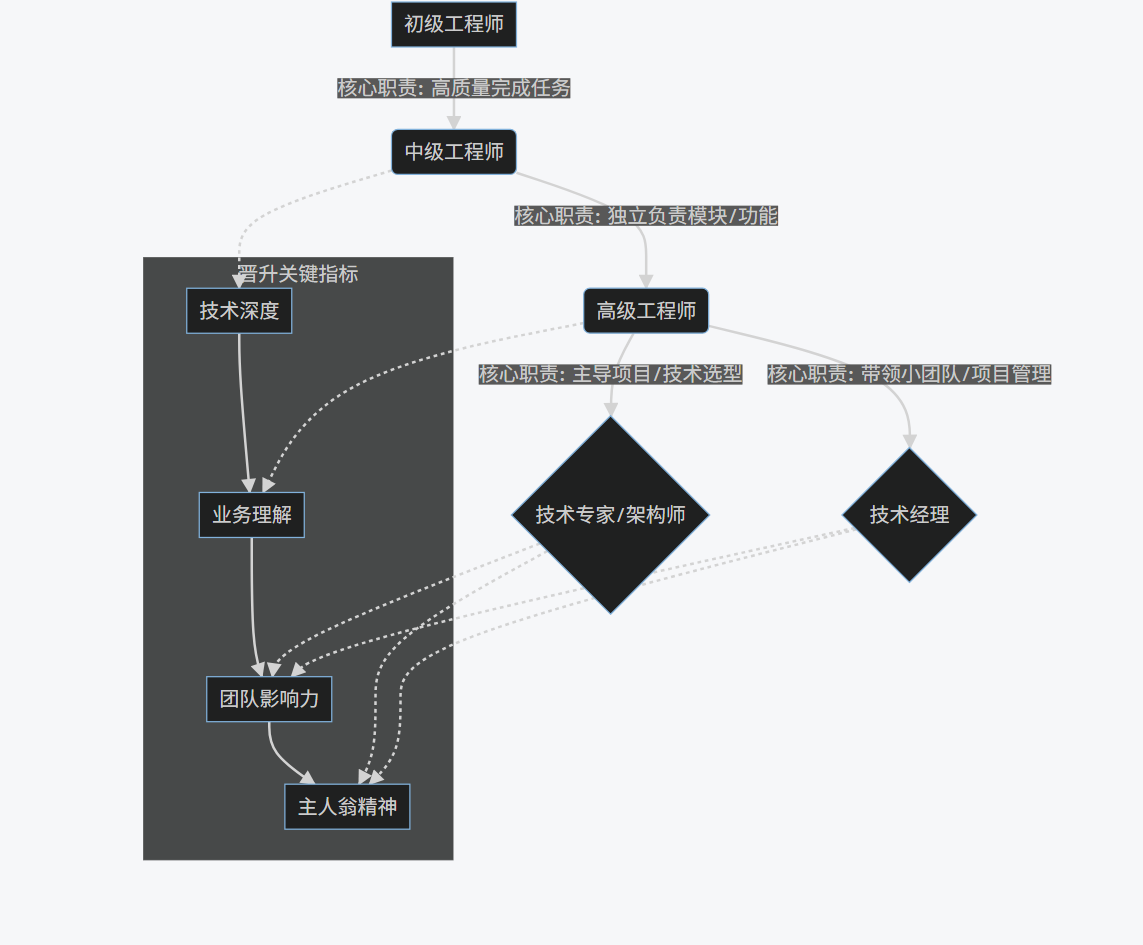 A[初级工程师] -->|核心职责: 高质量完成任务| B(中级工程师);