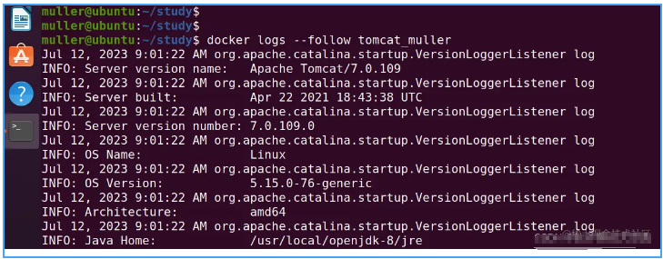 注:我们也可以通过tomcat_muller的ID来获取日志,这里不做赘述。