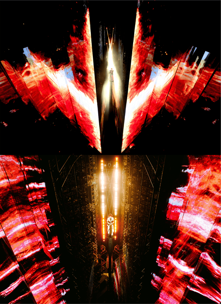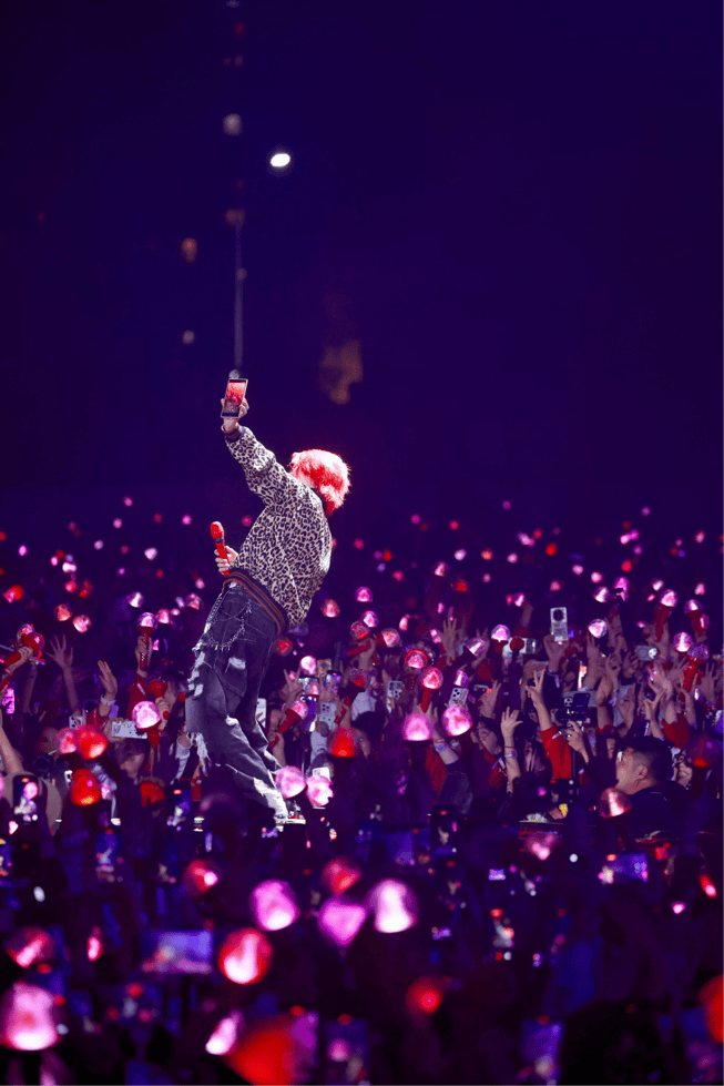 当夜幕降临,晚上场化身为震撼视听的音乐圣殿。在《地球之盐》《蜉蝣》的磅礴乐章中,山形机械舞台与灯光效果完美配合;《疯人院》《智商二五零》在跳跃的节奏中展现着戏剧张力;而当《好想爱这个世界啊》的旋律响起,圆环舞台化作一道温暖的光环,移动的玻璃花房里展现了火星独有的温情和治愈。在《怪诞心理学》《斗牛》环节里,华晨宇走上新增的T型延展台与歌迷们沉浸互动,《点燃银河尽头的篝火》里,他将落下的彩带送至观众手中,对着歌迷的镜头俏皮比“耶”,如此近距离的互动甚至触发了歌迷的镜头提示疑似AI,《For Forever》环节他还用现场歌迷的手机玩起了自拍,这些妙趣十足的瞬间也成为演唱会上科技与温情碰撞的独特记忆。第三晚的开场则再创突破,在《神树》开场中,华晨宇于20米高的特制舞台上,通过第一视角设备实时转演出现场盛况。这一创新之举让每位观众都能获得独一无二的观赏新体验,仿佛与他一同站在舞台之巅,俯瞰这片属于音乐的热土。