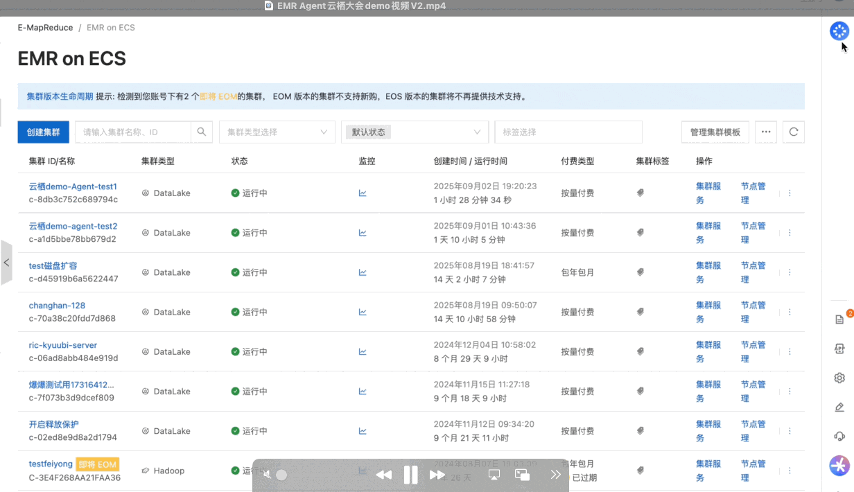 目前,EMR AI助手已在华东1(杭州)、华东2(上海)、华北2(北京)、华南1(深圳)、西南1(成都)等五大地域公测,支持EMR on ECS场景。用户只需登录EMR控制台,点击侧边栏的“EMR AI助手”即可开启智能对话。