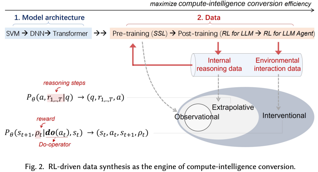 通过这项调查,我们回顾了计划、工具使用和记忆是如何逐渐被吸收到模型的内在策略中的。统一原则𝐿𝐿𝑀 +𝑅𝐿+𝑇𝑎𝑠𝑘 正在成为现代人工智能的方法论奇点。该框架通过预训练、后训练和推理的循环将计算转化为智能。