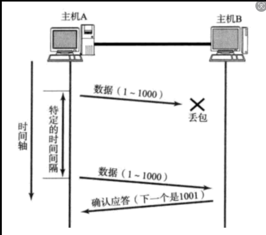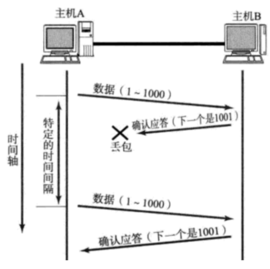 如果主机A在一个特定时间间隔内没有收到B发来的确认应答,就会进行重发,这就是超时重传机制。