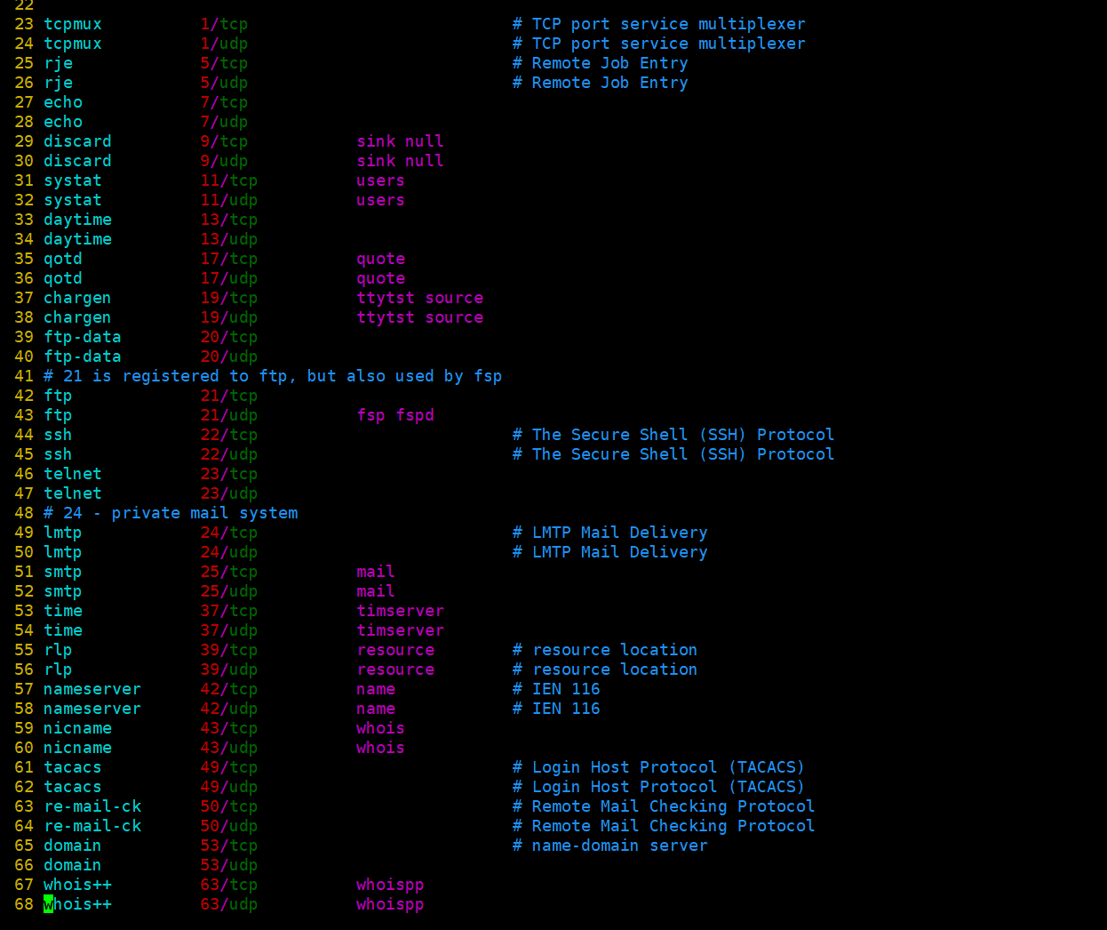- 0~1023:知名端口号,如HTTP,FTP,SSH等这些广为使用的应用层协议,他们的端口都是固定的。