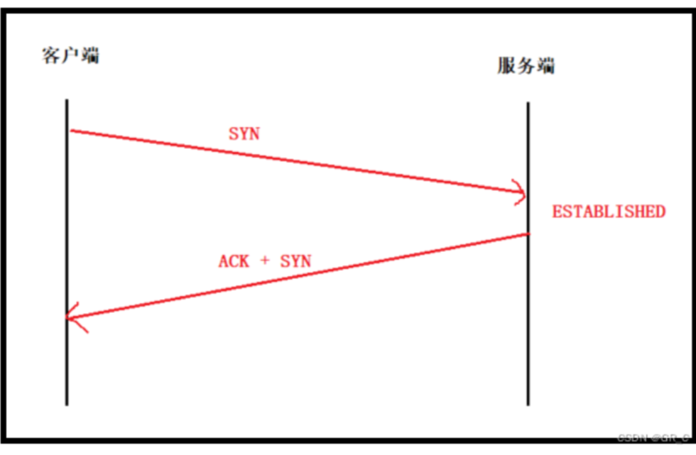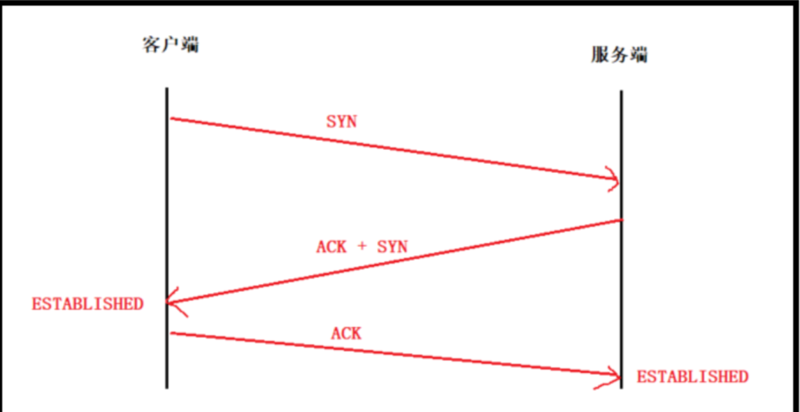 当客户端发出带有SYN(同步)标志位的数据端后,服务端收到后便建立连接,将套接字设置为ESTABLISHED(建立链接)状态。