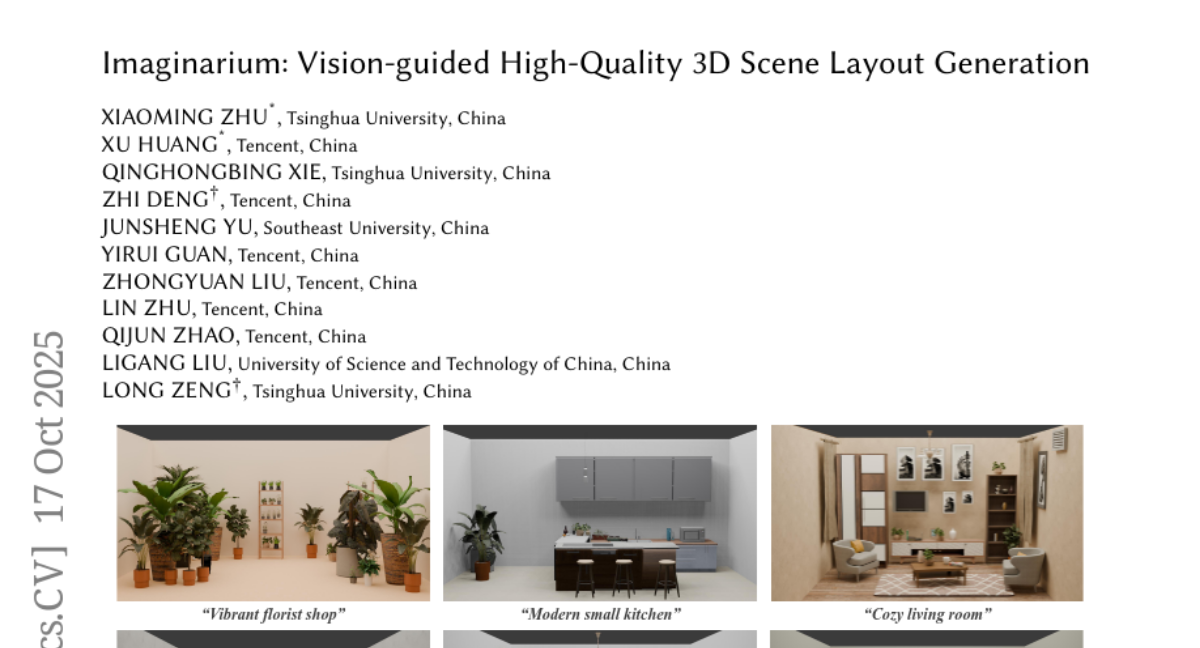 当你走进一个室内设计师的工作室,看到他们用几个小时甚至几天时间来设计一个房间的布局时,你可能从未想过这个过程有一天会被彻底颠覆。现在,清华大学的研究团队开发出了一套名为"Imaginarium"的系统,它能够仅凭一句简单的描述,就在几分钟内生成出专业级别的3D场景布局。这就像是拥有了一个超级助手,你只需要告诉它"设计一个温馨的客厅",它就能立刻为你呈现出一个完整的3D空间,包括沙发的摆放位置、茶几的高度、装饰品的陈列等等。