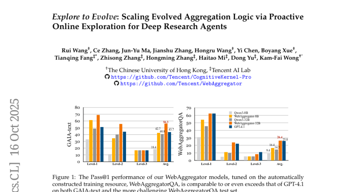 在人工智能快速发展的今天,香港中文大学和腾讯AI实验室的研究团队带来了一项令人瞩目的研究成果。这项名为"Explore to Evolve: Scaling Evolved Aggregation Logic via Proactive Online Exploration for Deep Research Agents"的研究发表于2025年10月,论文编号为arXiv:2510.14438v1。有兴趣深入了解的读者可以通过该编号查询完整论文。