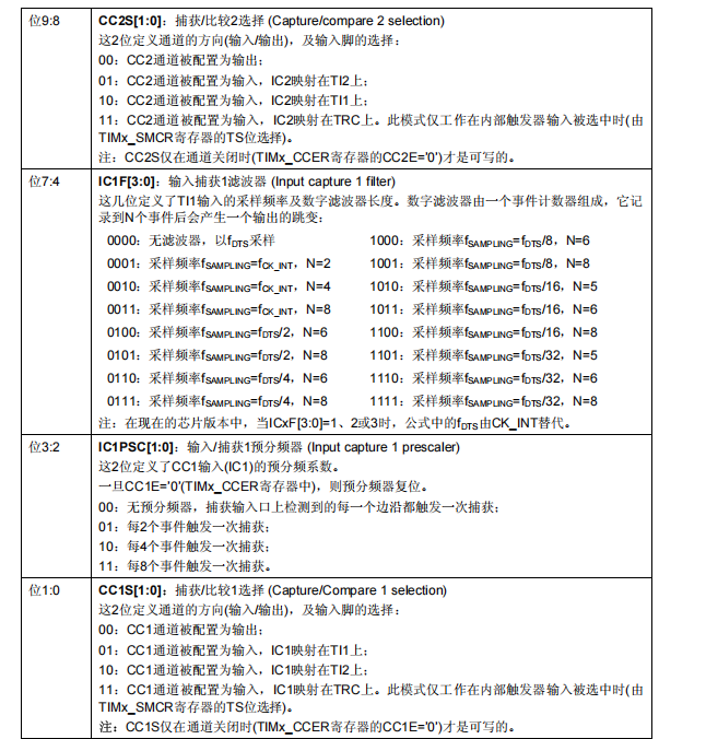 TIM4->CCMR1 &= ~TIM_CCMR1_CC2S_0; // 选择工作模式:输入(10)