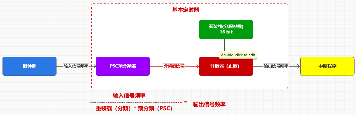 公式 F = 1/T 、 输入信号频率/输出信号频率 = PSC*ADD 、 1s = 1000ms = 1000000us