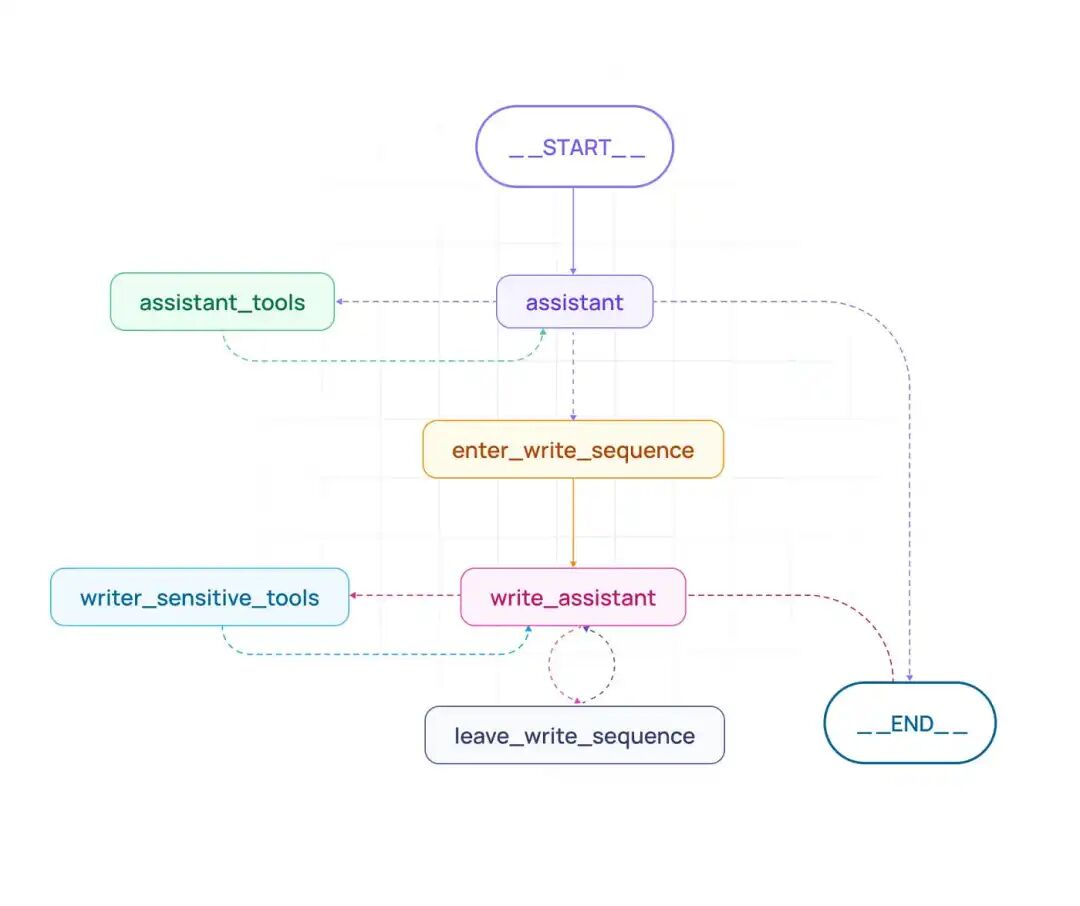 - 条件边 :条件边引入了动态机制,使工作流能够根据特定节点的操作结果进行分支。例如,根据用户的响应,图可以决定终止交互或继续调用某个工具。这种决策能力对于创建能够适应不同情况的应用程序至关重要。
