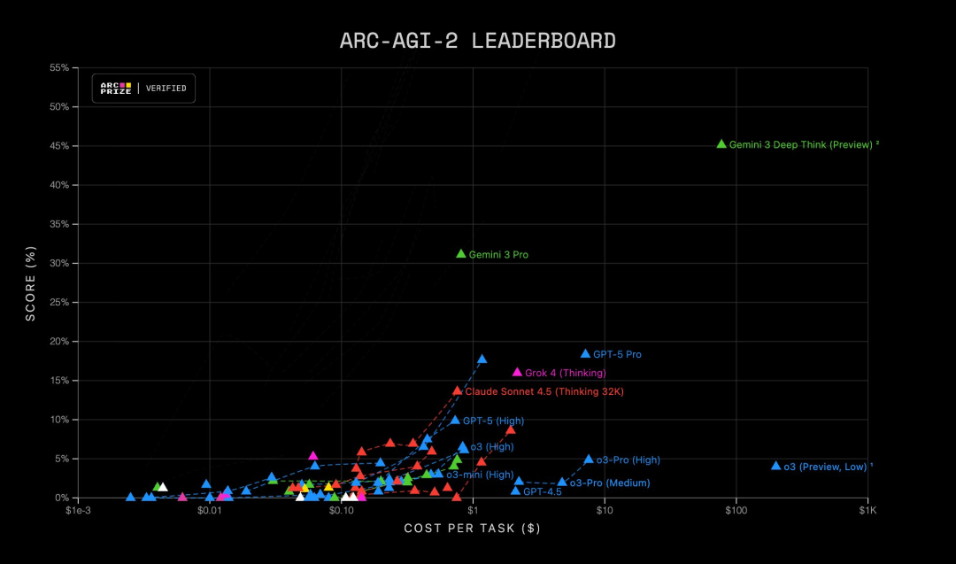 ARC-AGI-2 专门用全是没见过的新奇智力题,来检验模型是不是能真正举一反三,而不是靠死记硬背。