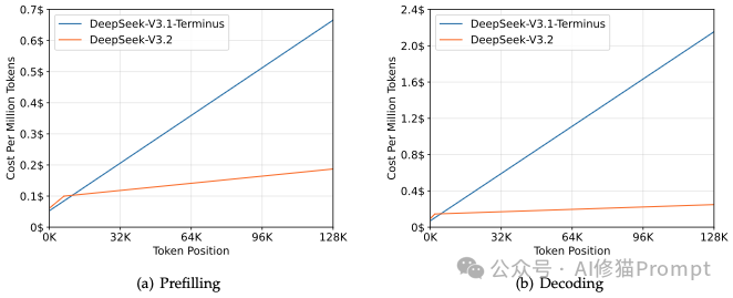 这种设计使得DeepSeek-V3.2在处理128K长上下文时,不仅速度飞快,而且并未牺牲理解能力。