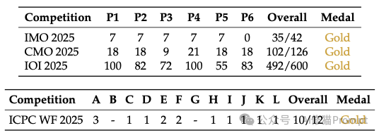 在 IMO 2025(国际数学奥林匹克) 中,它拿到了35/42分,达到金牌线。