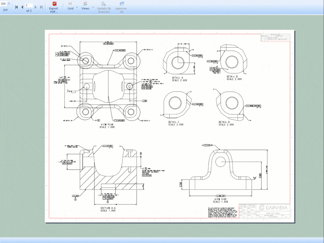 Grid: 自动检测图形的大小,并在二维PDF图形上创建相关网格。网格应层叠在图框凹口的顶部。在一些需要手动调整网格的特定情况下,单击极值线并拖动到适当的位置。要调整特定线条,请单击它并拖动到适当的位置。