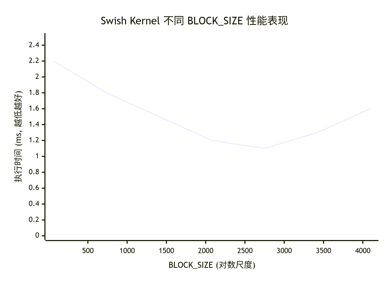 图注:在BLOCK_SIZE=1024时获得最佳性能。太小则核启动开销大,太大则可能UB利用率下降或并行度不足。