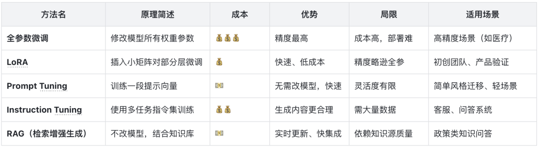 全参数微调(FFT):更新所有参数,适合数据充足场景。