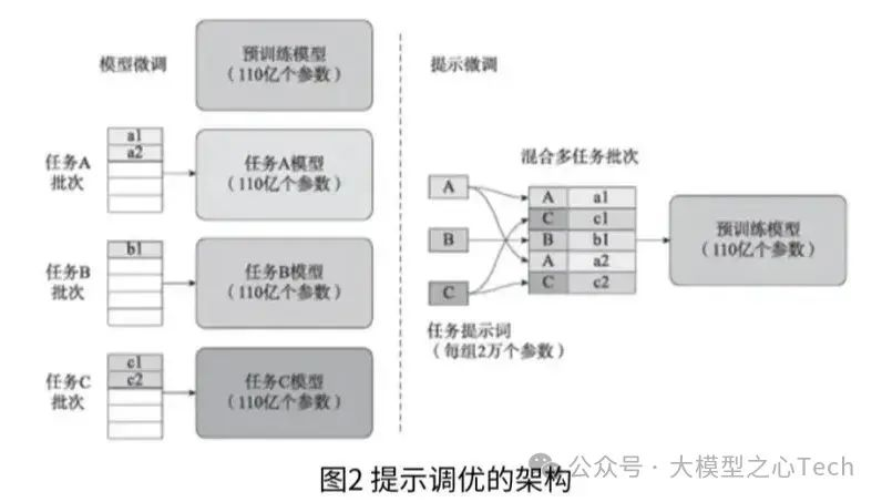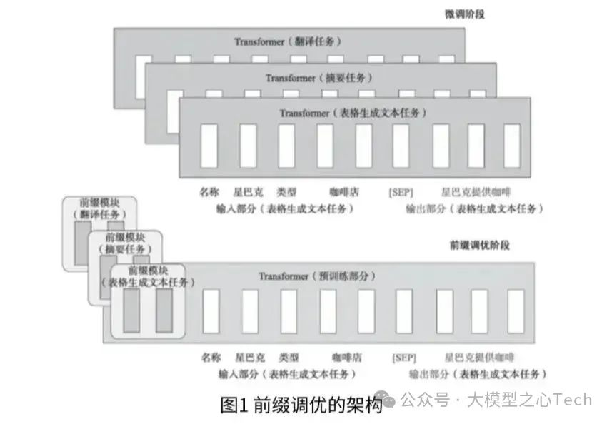 与传统的微调范式不同,前缀调整提出了一种新的策略,即在预训练的语言模型(LM)输入序列前添加可训练、任务特定的前缀,从而实现针对不同任务的微调。这意味着我们可以为不同任务保存不同的前缀,而不是为每个任务保存一整套微调后的模型权重,从而节省了大量的存储空间和微调成本。