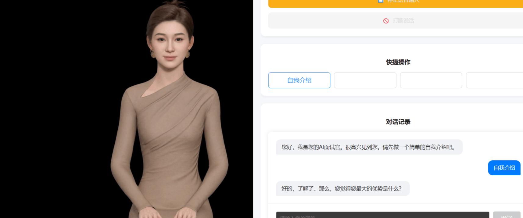 当数字人正在说话时,点击“打断说话”按钮。