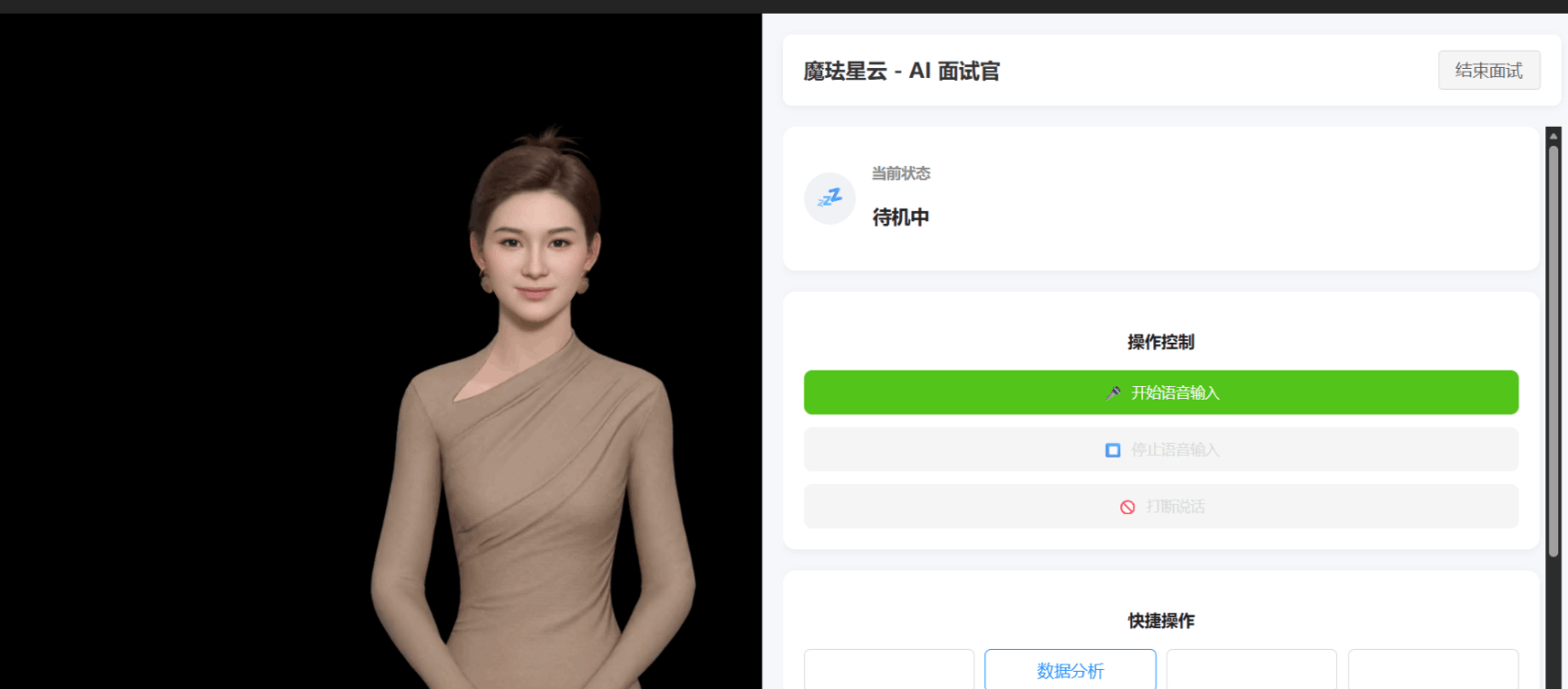 结果: 数字人立即停止说话,状态变回“待机”。