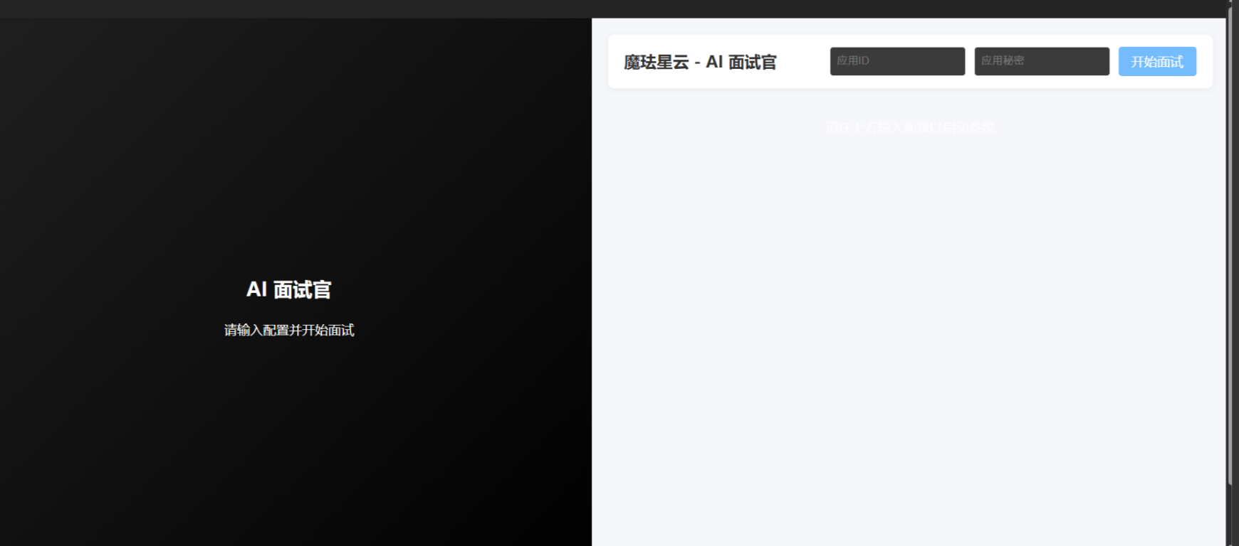 <button @click="startInterview" :disabled="!appId || !appSecret" class="primary-btn">开始面试</button>