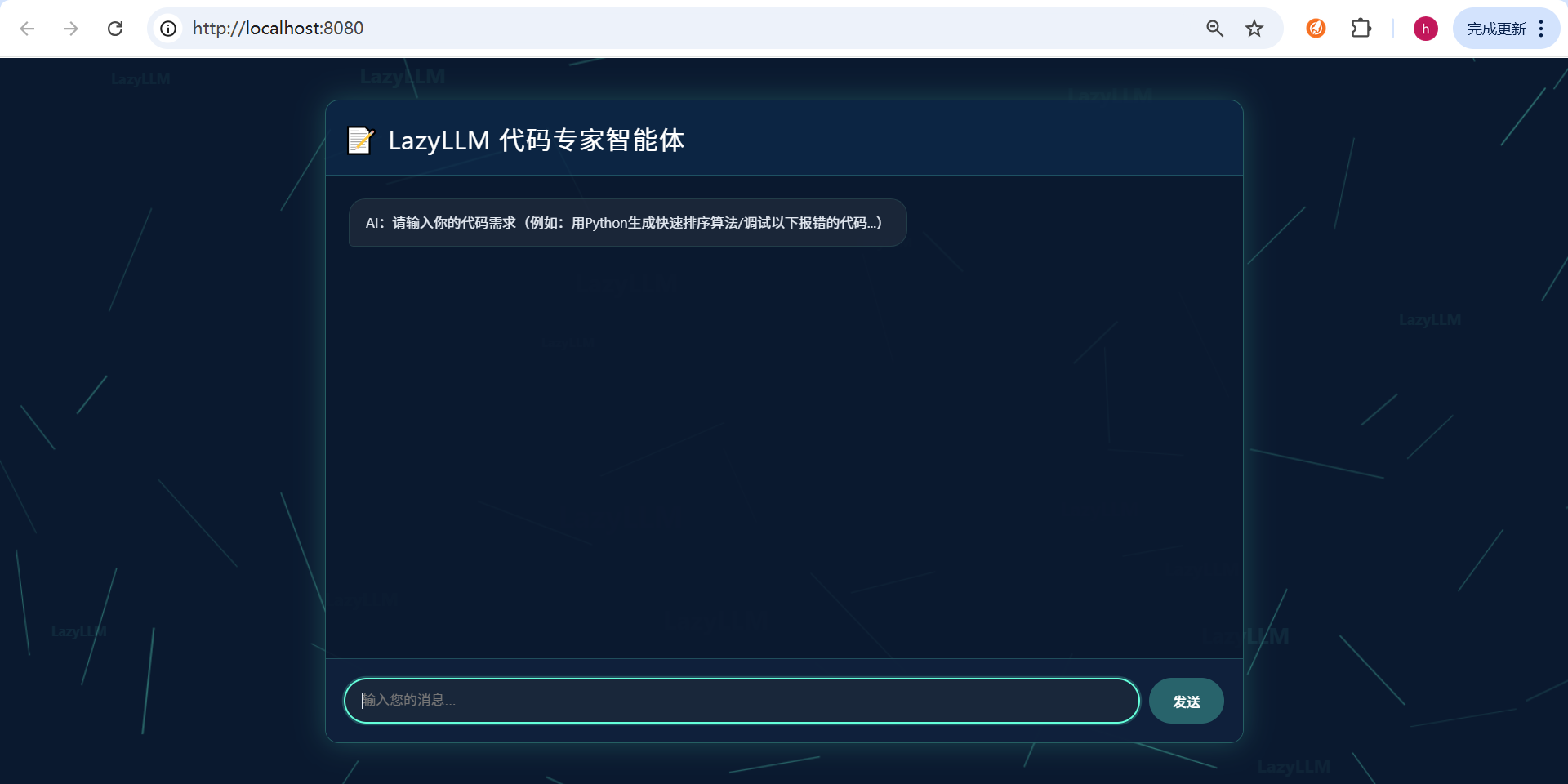 运行代码后,终端会输出访问链接(http://localhost:8080),打开浏览器即可与智能体交互,示例如下: