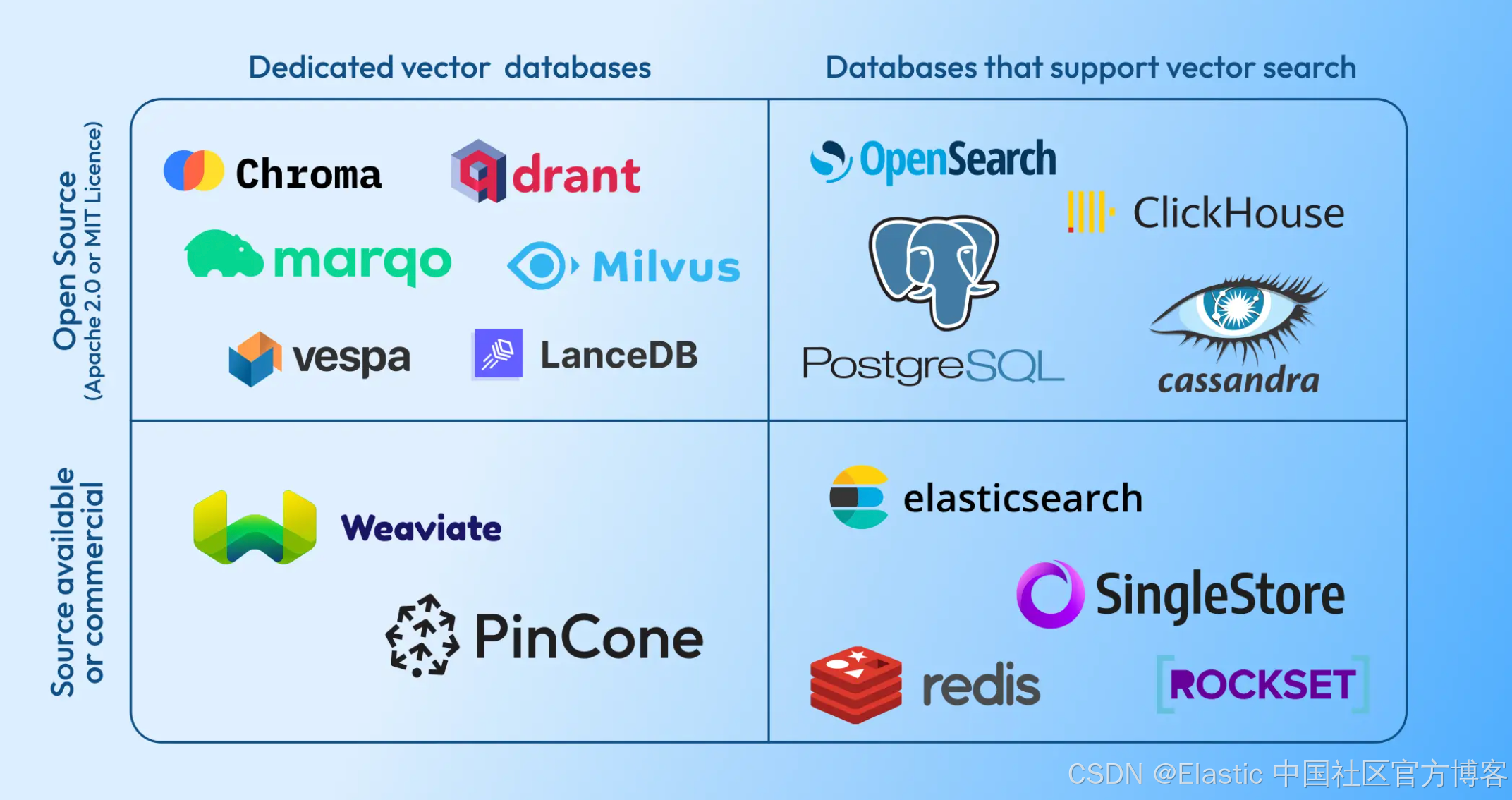 从各大数据库支持的速度看,也就是近一两年就都支持了向量搜索、现在几乎都很难找到哪个不支持的,这本身体现了向量搜索的壁垒之低。