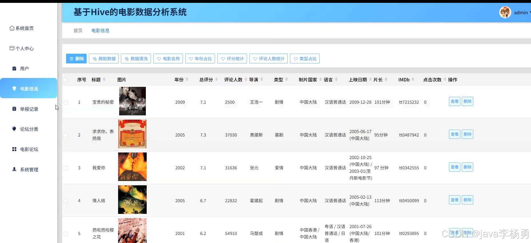 基于大数据爬虫+Hadoop+数据可视化+SpringBoo的电影数据分析与可视化平台