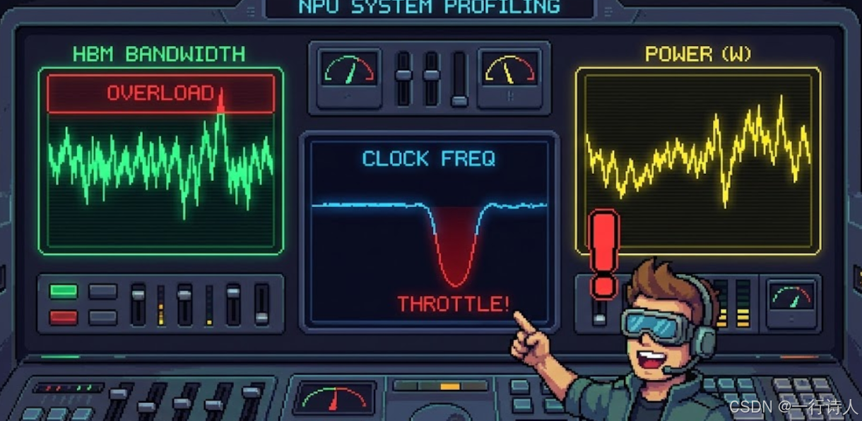 普通的 MSProf Timeline 只能告诉你“什么时间在跑什么算子”,但无法告诉你“跑的时候硬件状态如何”。System Profiling 就是为了回答这个问题而生的。它像一个心电图机,实时记录 NPU 的脉搏。