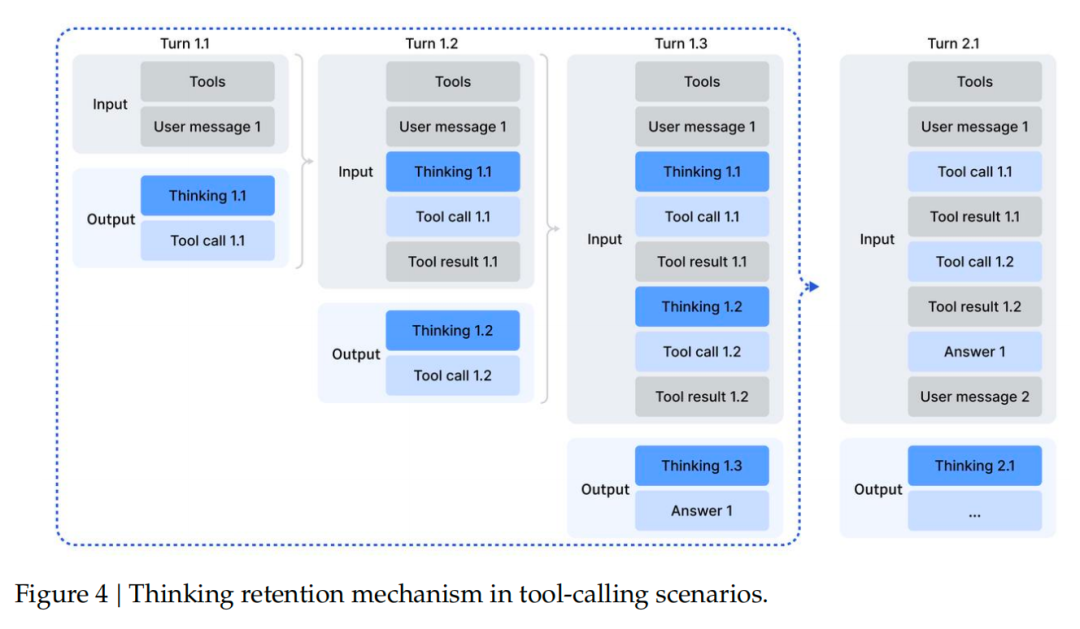 在思考上下文管理方面,团队发现DeepSeek-R1那种每次开启新对话就丢弃推理内容的策略,实在是太——浪费token了。