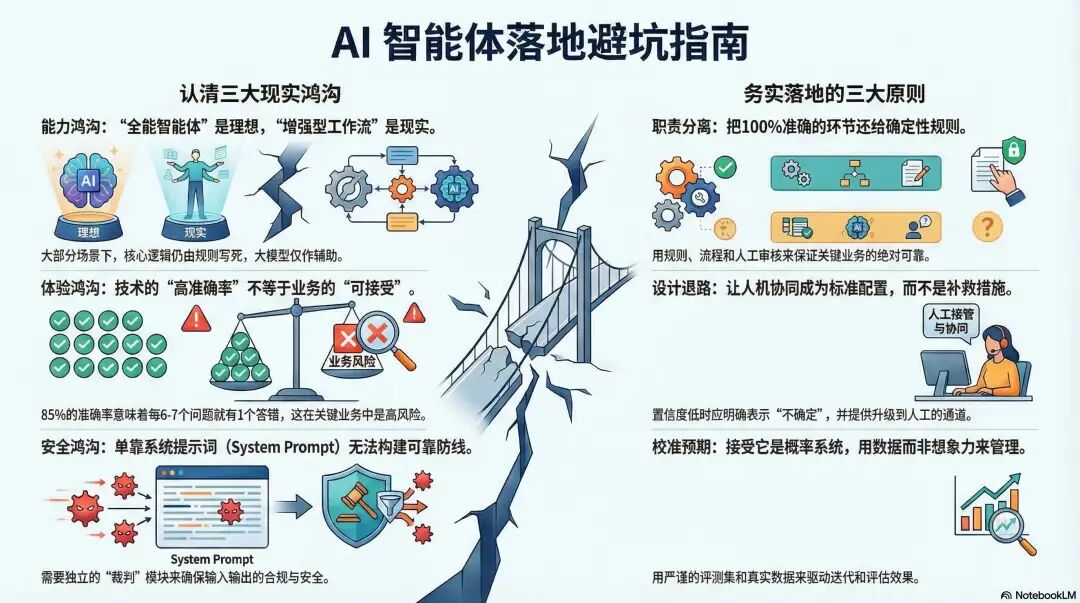 - 为 Agent 设计清晰的“退路”:置信度不够就说“不确定”,关键链路随时可以升级到人工,而不是硬撑着给一个看似完整的答案