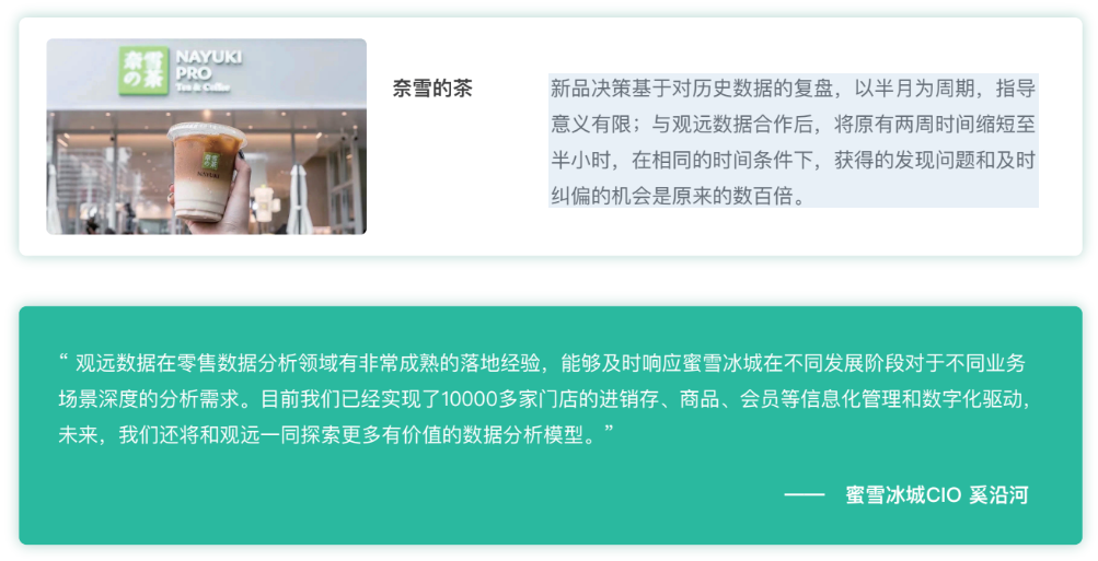 我们已经成功服务了包括奈雪的茶、汉堡王、、、元气森林在内的众多行业领军企业,帮助他们在激烈的市场竞争中,通过数据洞察抢占先机。例如,我们助力奈雪的茶将新品决策周期从两周缩短至半小时,赢得了宝贵的市场反应时间。