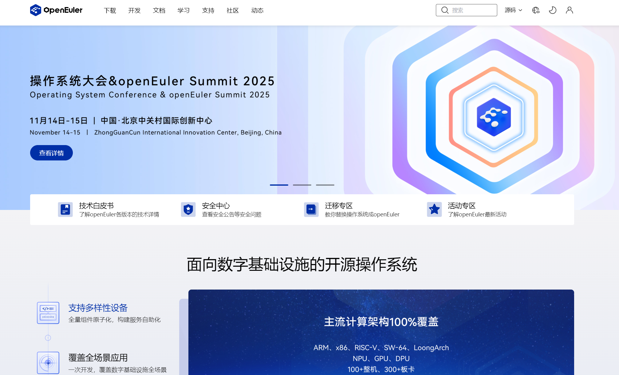 更吸引我的是,openEuler定位为面向数字基础设施的操作系统,支持服务器、云计算、边缘计算等场景。正好最近我在折腾家用服务器和AI应用,索性就拿它来实战一番。