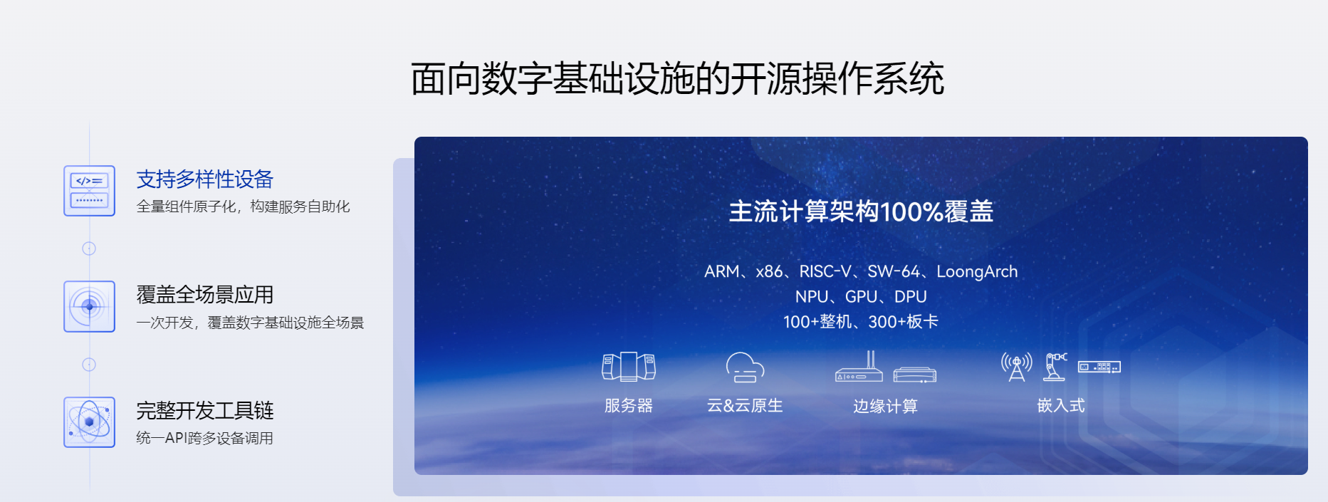 openEuler是由开放原子开源基金会孵化的全场景开源操作系统项目,面向数字基础设施四大核心场景(服务器、云计算、边缘计算、嵌入式),全面支持ARM、x86、RISC-V、loongArch、PowerPC、SW-64等多样性计算架构