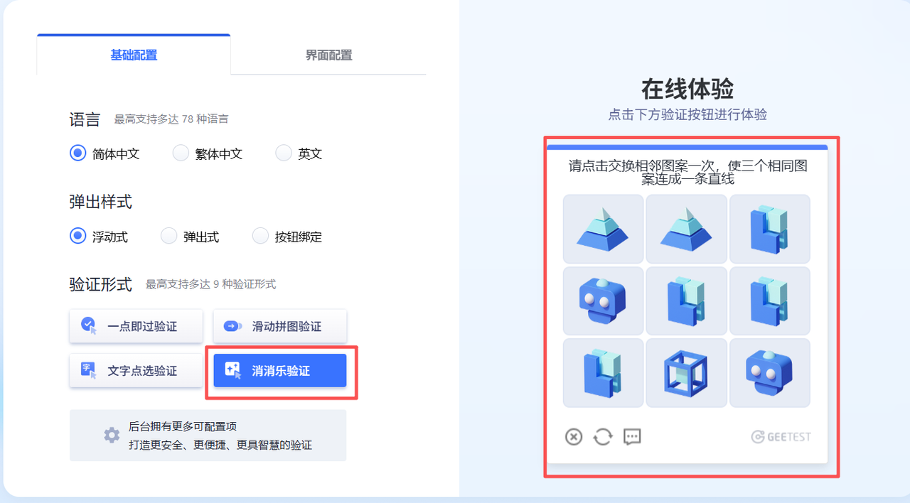 - 国际化应用场景:九宫格、图形连线等验证方式更具通用性,不受文字和文化差异的影响。