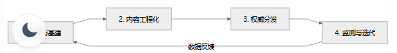 | D. 监测与迭代 | 量化效果,指导持续优化。 | AI曝光份额追踪、引用源分析、竞品策略对比、A/B测试。 | 控制中枢(15%):通过数据反馈驱动整个飞轮持续正向转动。 |