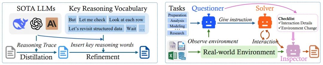 为了解决这个问题,研究团队开发了一套"数据驱动的轨迹合成"框架,包括两个互补的部分:推理轨迹合成和交互轨迹合成。