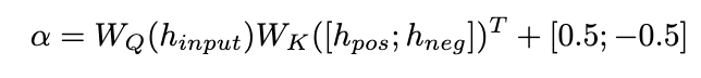 我们使用 作为查询来计算 和 的注意力权重。通过在添加校正项 [0.5;-0.5], 的注意力权重被限制在 [-0.5,0.5] 的范围内,从而实现了在正、负两个方向上自适应地集成来自 的知识的效果。最终, 和 LLaMA 层输出的总和形成了动态集成单元的输出。